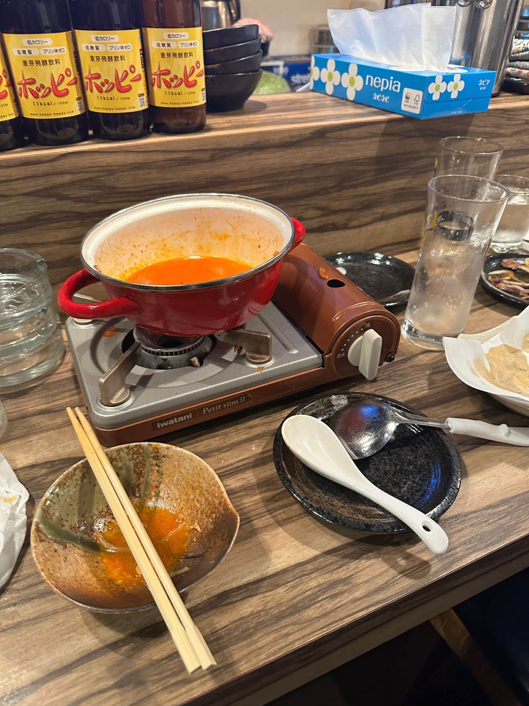 하지만 안주가 너무 맛있어서 김치나베와 닭날개튀김을 시켰습니다.