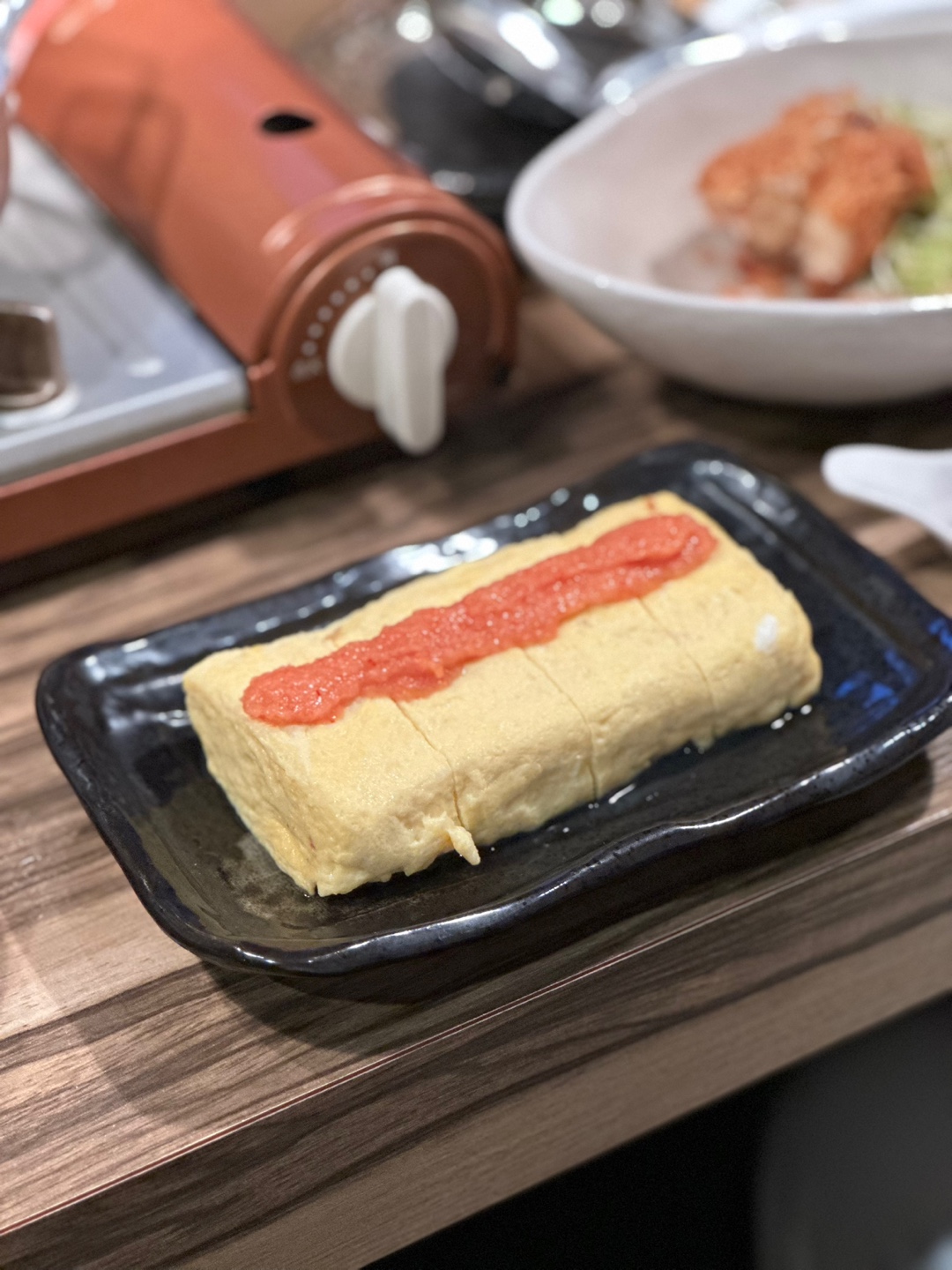 세 번째는 계란말이에 위에 명란젓인데요, 계란이 매우 부드럽고 조리를 저희 앞에서 바로하 셨습니다!