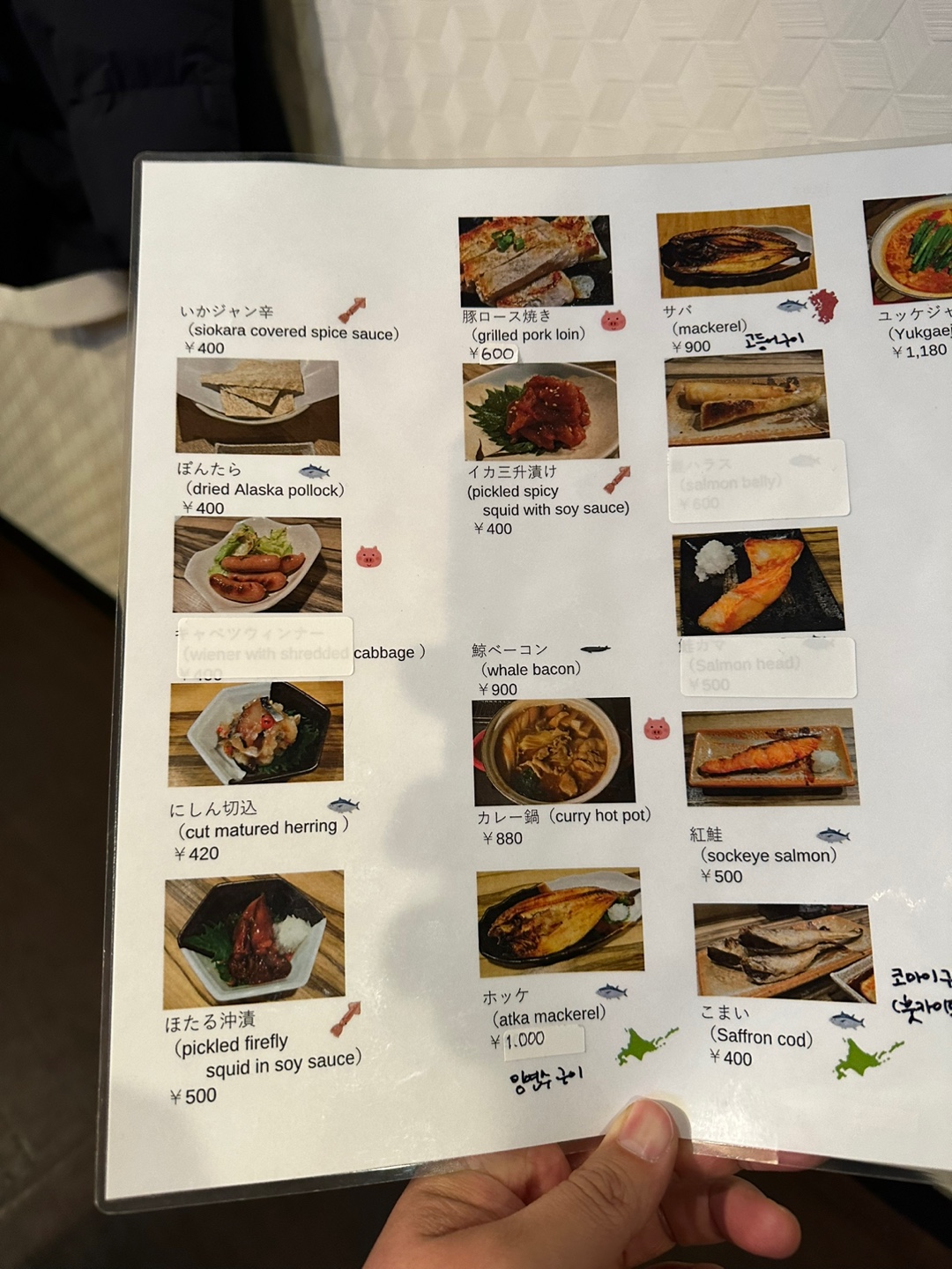 얼마 전 한국손님이 다녀가셨는데 그때 사장님께서 한국어 메뉴를 부탁하셨고